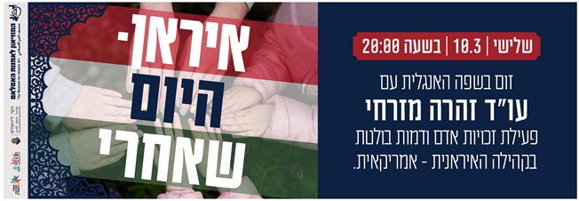 זום בשפה האנגלית עם עו"ד זהרה מזרחי פעילת זכויות אדם ודמות בולטת בקהילה האיראנית – אמריקאית.